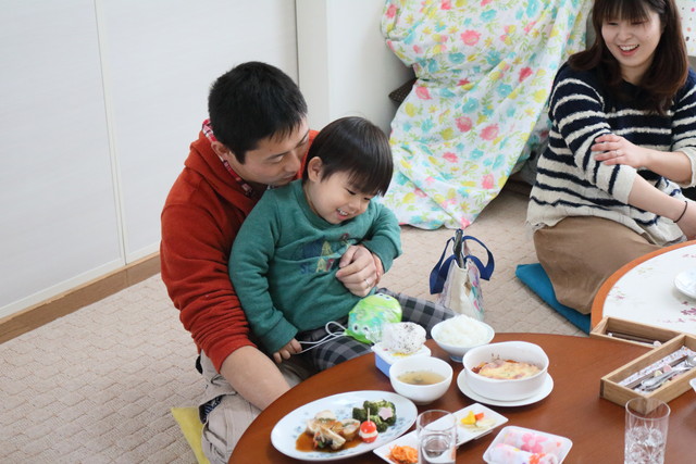 パパたちも初めてのさとちゃんのご飯に満足してくれたようす(*^^)v