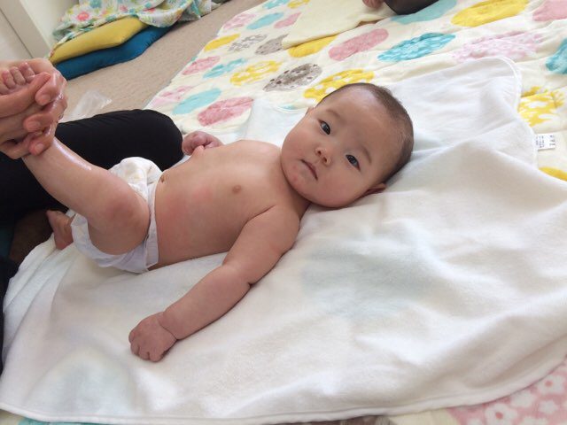 12月のベビマに来てからママがいつもマッサージしてくれるから、今回はずっとニコニコだったよ(*^^)v