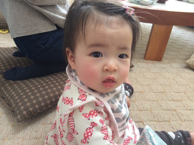 あかちゃん♡去年のママの会で作ったヘアピンがお気に入りなんですよ~(*^^)v
