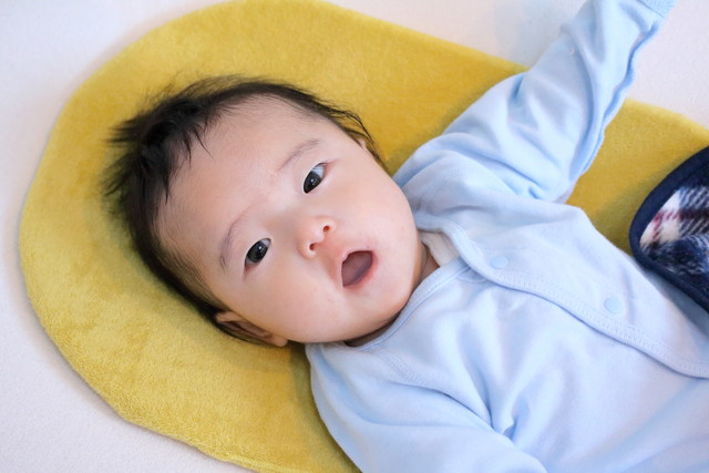 ママが思うよりちょっとだけ暑がりだったしんくんには、肌触りの良い肌着と掛け物で体温調節。