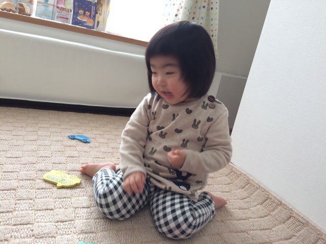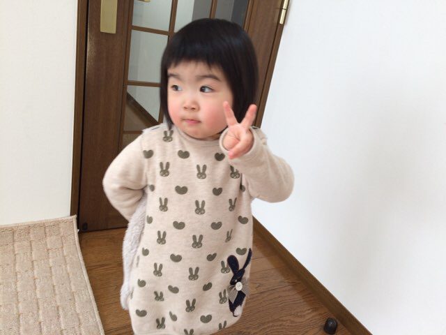 とびっきりのい~顔は、パパに見せてあげなきゃいけないから、このくらいのポーズで許してね♡