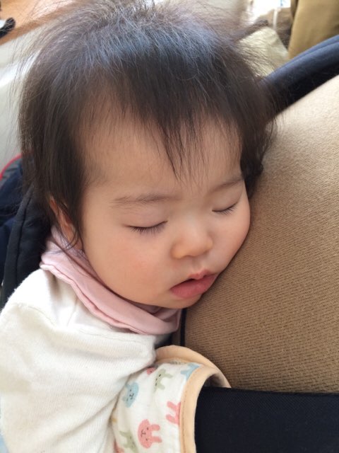 りっちゃんは、ママがお話を聞いているうちに背中で寝ちゃってました・・・zzz。