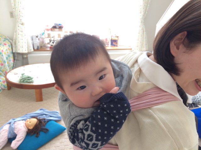 ママが持ってた海外製のだっこ紐の使い方がわからないので・・と参加してくれました。