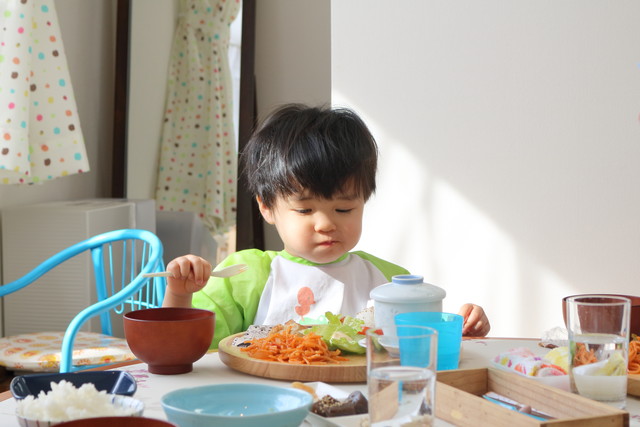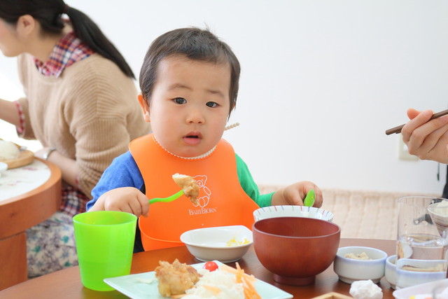 ママと一緒にご飯をモリモリ食べて、めんこいったらありゃしない!