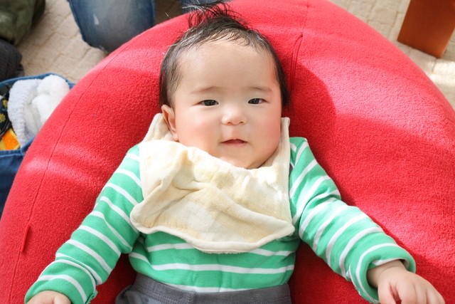 汗かきメンズ、抱っこからの着陸後の表情(^^