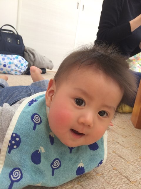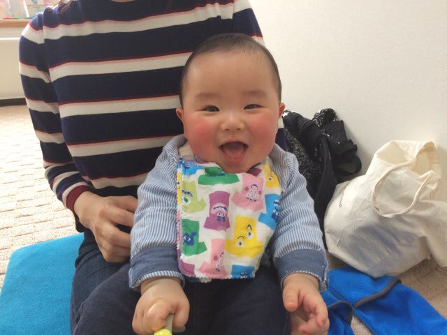 ママの膝の上でご機嫌なのはせいくん♪