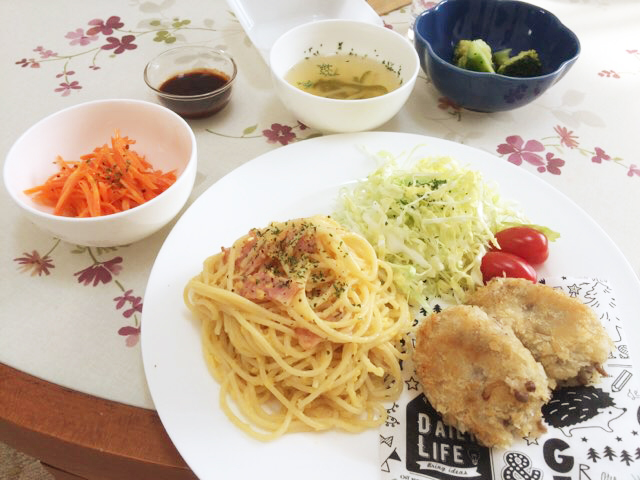 常連さんのママたちからのリクエストは、“カルボナーラにコロッケ”