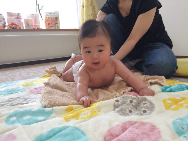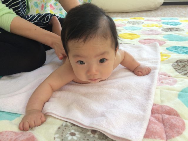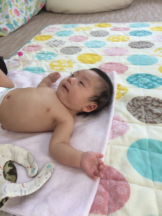 最初のうちはちょっと泣いちゃった感じだったけど、マッサージが始まると気持ちよくてすぐにご機嫌になりました(*^^)v