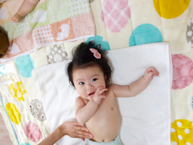 お風呂上りにパパやおばあちゃんが保湿剤塗ってくれても“なんか違う~”ってなっちゃうんだ。