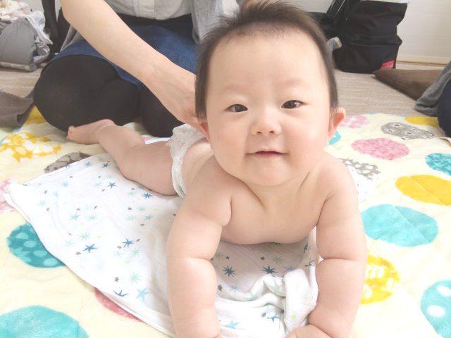 ベビマは何回も来ているベテランだけど、何度来てもマッサージは気持ちいいし、いろんなお友だちに会えるから楽しいです(*’ω’*)