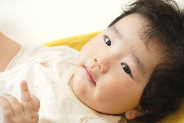 お泊り2日目の朝に目をあけてニッコリしてくれたのは期待の大型新人、恵くん。