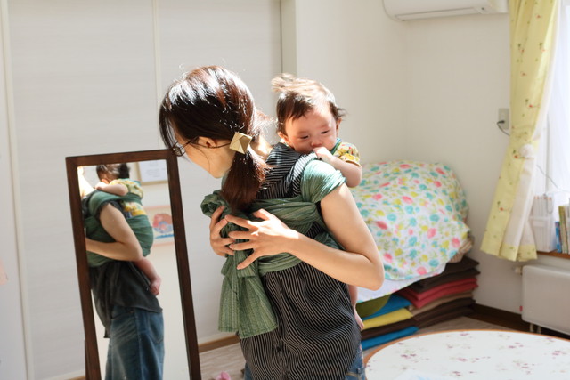 体が大きくなったので、ママとおんぶの練習に来てくれました。