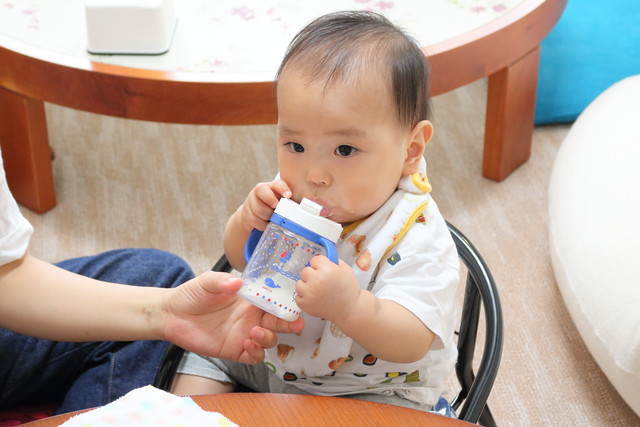 すっかりお座りはマスター。ずりばいも始めたみたいですが今回は見る事ができず…