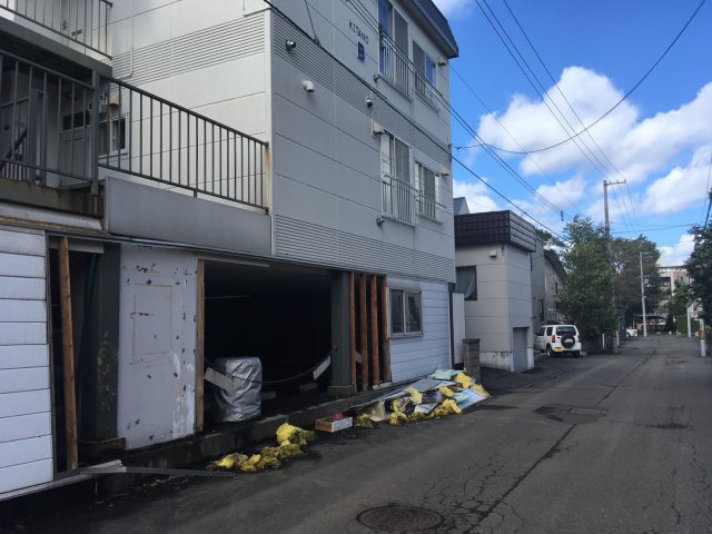 暗くてわかりにくいのですが、道路に断熱材と思われるものが散乱しています(>_<)