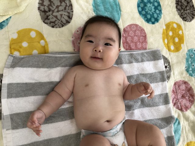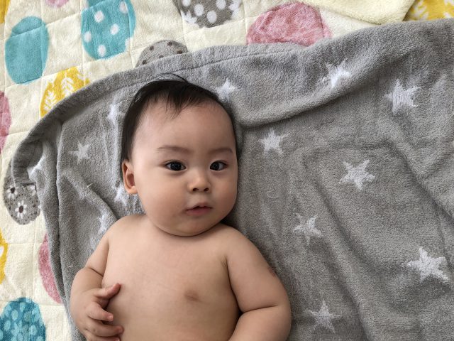 気持ちよさそうなニコニコ笑顔だけど、カメラを向けると真顔になっちゃうのは赤ちゃんあるある。