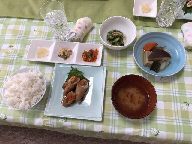 今月のベビマランチのメインメニューは「ご飯がススム肉巻きとお煮しめ」