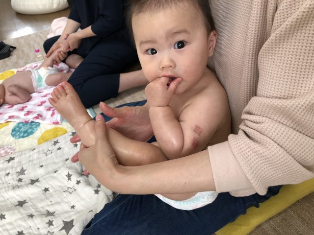 さんさん助産院のベビーマッサージ教室は、毎週木曜日の11時から開催しています。