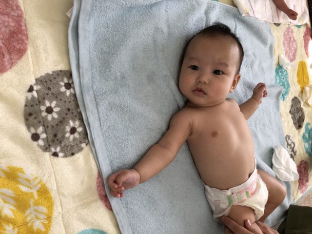 オイルを使わずお洋服の上からマッサージできるので、お泊り中の1カ月未満の子も参加していただけます。