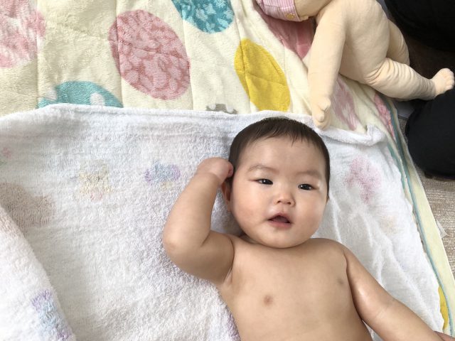 ママのマッサージが上手なので、気持ちい~のお顔です(*^^*)