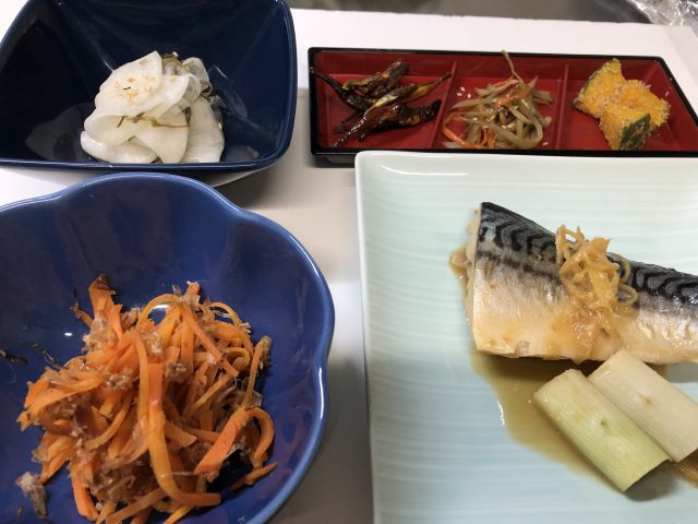 - お惣菜3点盛(小魚の佃煮・きんぴら・かぼちゃのごま和え)