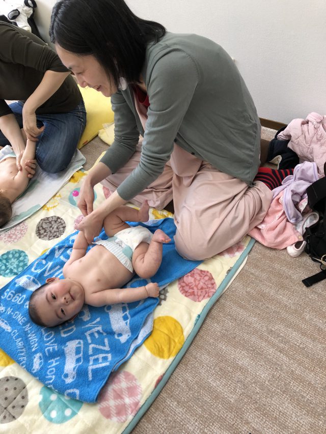 さんさん助産院のベビーマッサージ教室は、毎週木曜日の11時から開催しています。