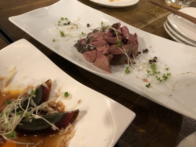 鶏白レバー山椒煮(写真左)とピータン(写真右)。