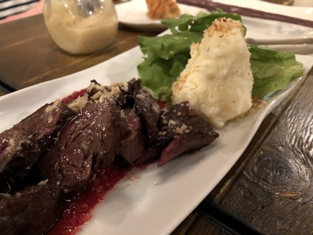 牛肉も柔らかくてジューシー♡ポテサラにもしょうががのってます。