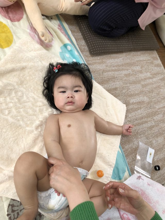 お家でのマッサージは大きくなっても楽しんでいただけるのですが、さんさんのベビマには小さい月齢の子もいるので、動きたいお子ちゃまにもちょっとジッとしていてもらう必要があります。