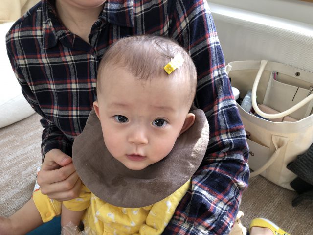男の子だから、タイピン風にしよっか・・って言ってたけど、結局ヘアピンになりました。