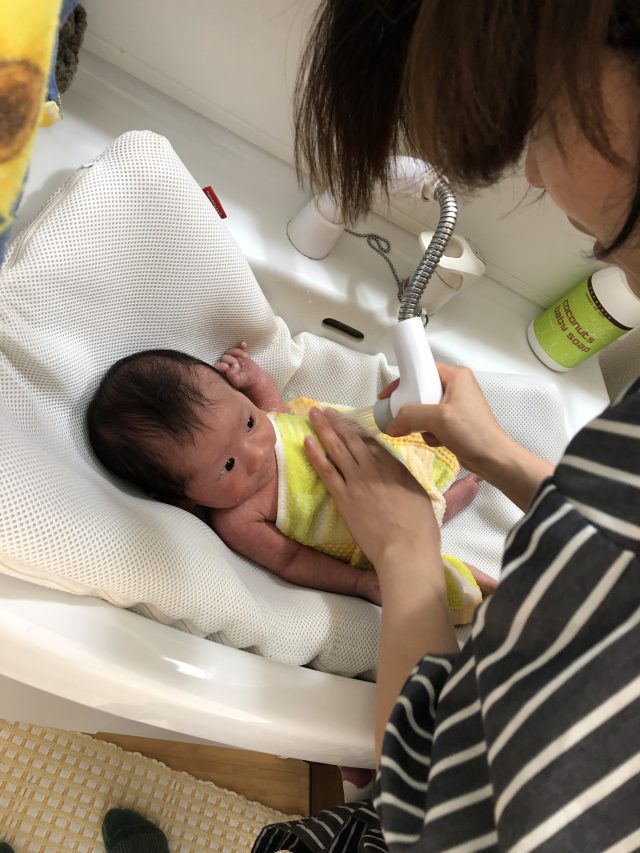 ゆうくんは、産院でシャワー浴を教えてもらい、お家でも実践していたのですが、