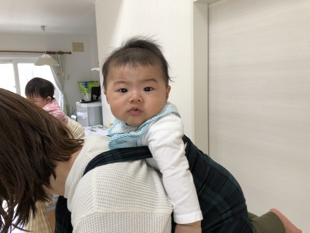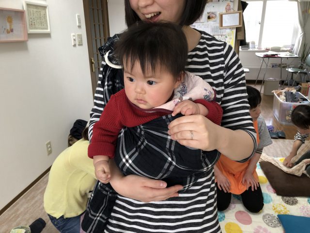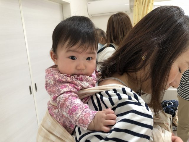 今週のだっことおんぶを楽しむ会には、4カ月から8カ月までの色々なことに興味が出てきたお子ちゃまがほとんどでした。
