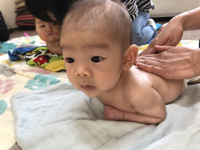 参加メンバーの中で年長さんのこうくんは、うつ伏せだってごらんのとおり。