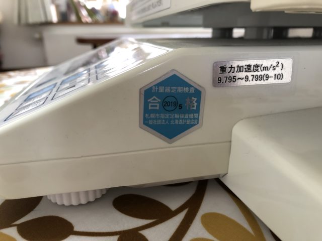 2代目の体重計は、製造年から今年は検査免除の証をいただきました。