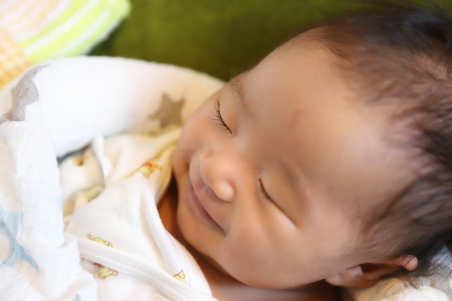 おくるみを使って眠りが長続きする工夫もしてみました。