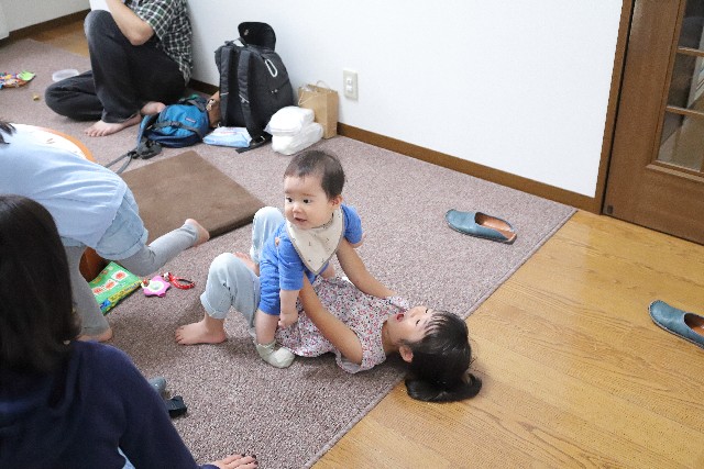 すずちゃん(次女)はお姉ちゃん(長女)に遠慮しつつも、弟から離れた隙に可愛がってました。