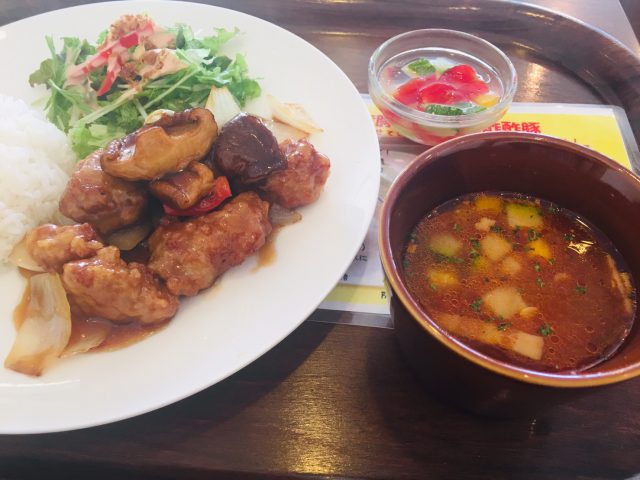 さとちゃんがオーダーしたのは、“やわらか道産豚の特性黒酢酢豚”