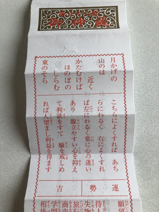 前にテレビで見たところによると、おみくじは最初の和歌のところが大切なんだそうです。