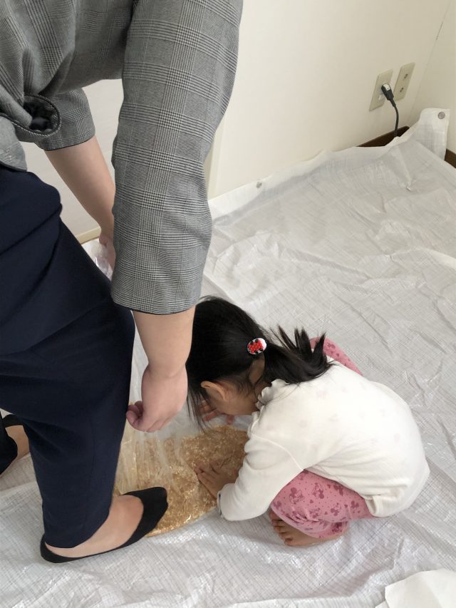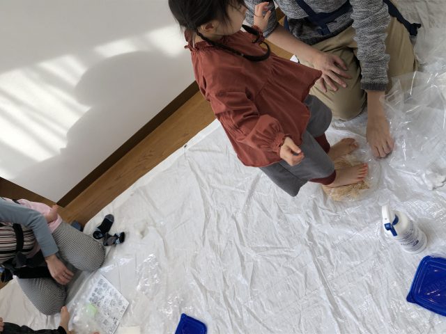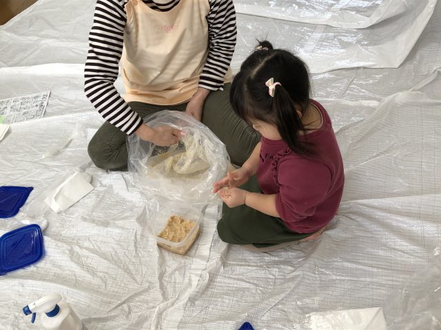 ちょっと粘土遊びみたいでたのしそうなひなちゃん。