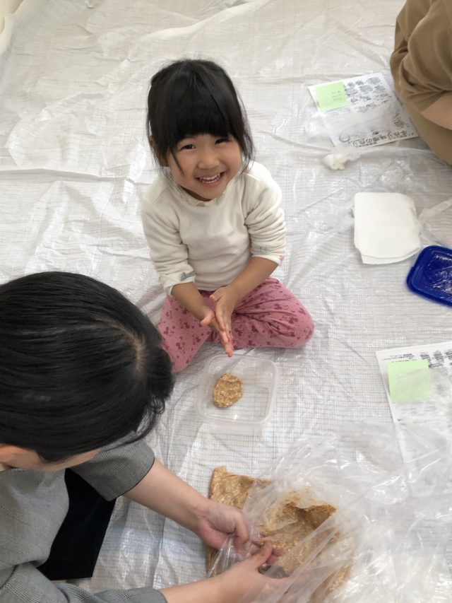 寒くなってくると、毎年2~3歳くらいのお子ちゃまを対象に味噌づくりをします。