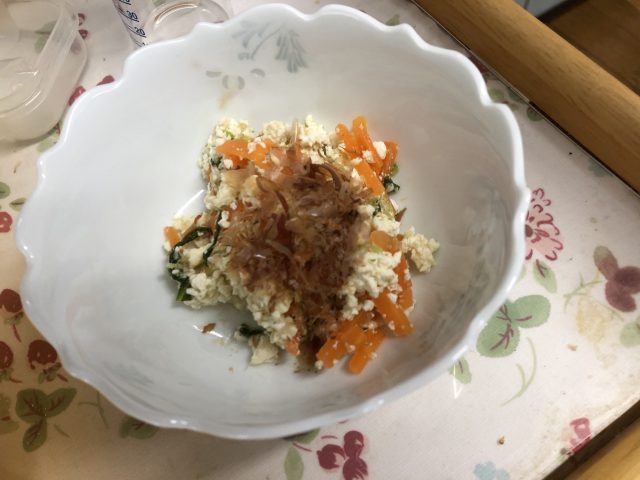 • 豆腐と野菜のおかか和え