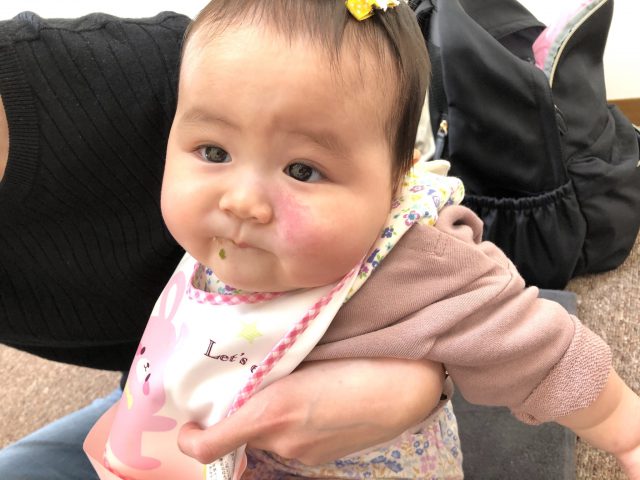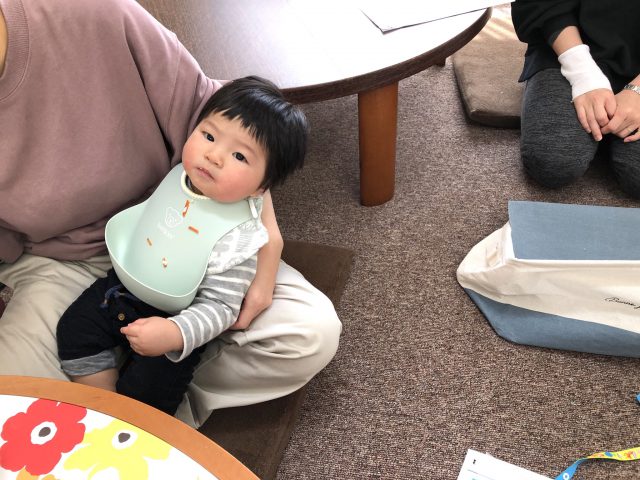 離乳食も食べたり食べなかったり・・って言うのがお悩みだったみたいだけど、他のお子ちゃまと一緒に食べてたのもあって、意外と食べられたみたい(*^^)v