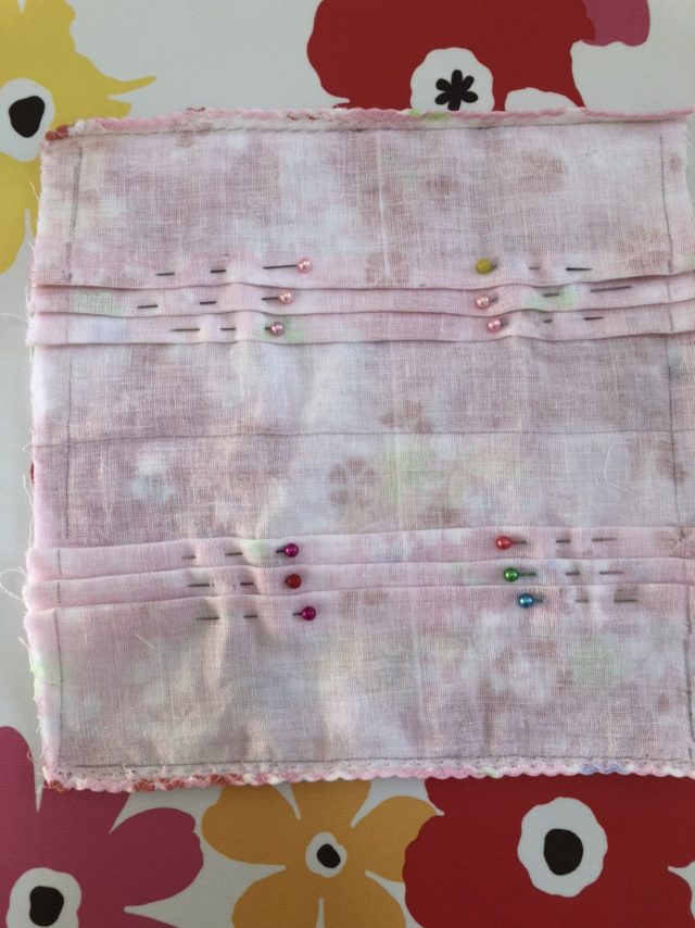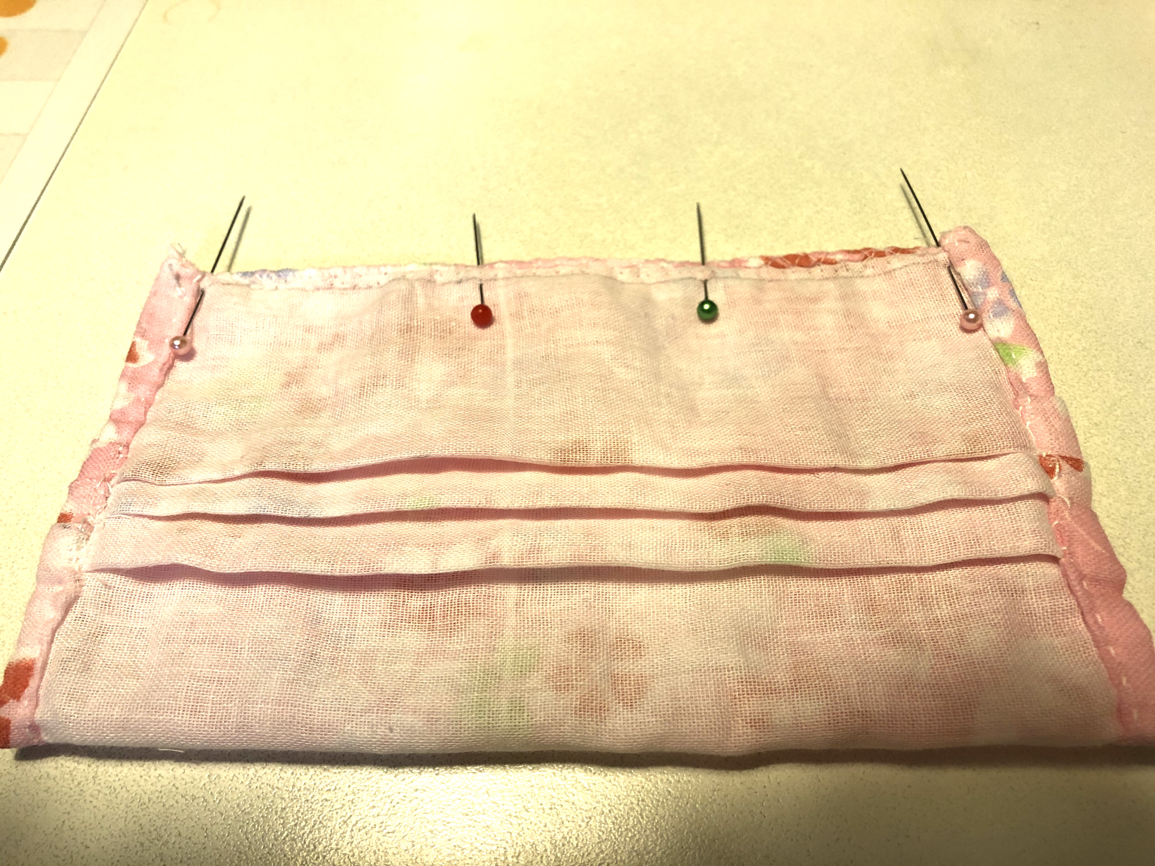 ③マスクの左右を3つ折りにして縫います。