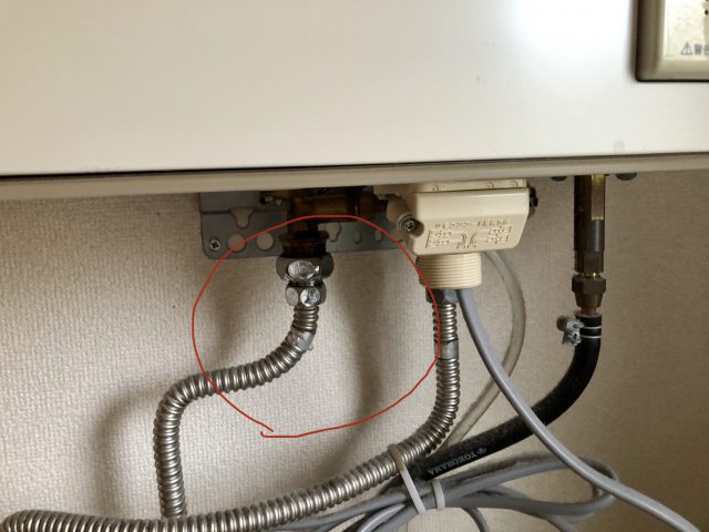 音の出どこをたどっていくと、給湯ボイラーの管から。