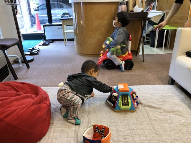 こちらのご兄弟は、慣れた感じでおもちゃで楽しみながらママを待ちます。