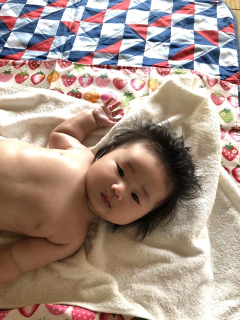 ママのマッサージは気持ちが良くて大好きなんだけど、終わった途端に眠くなり泣いちゃうんです(>_<)