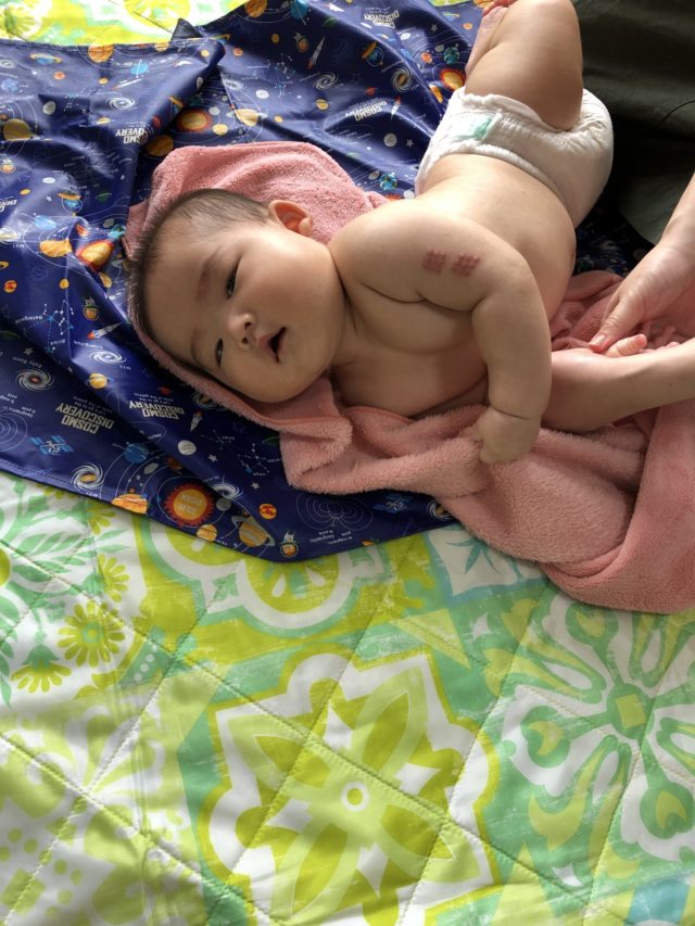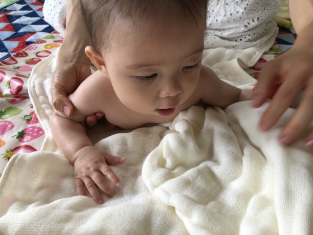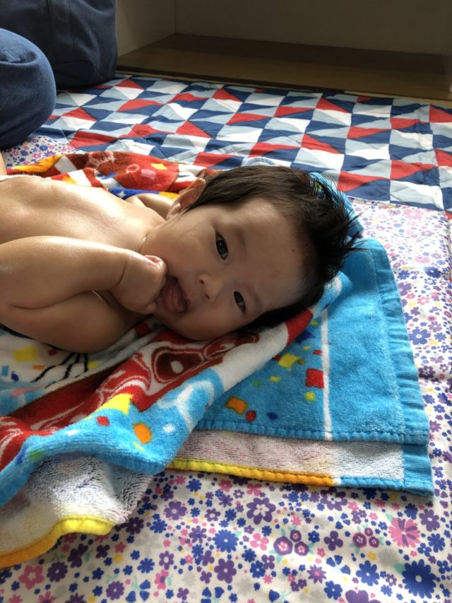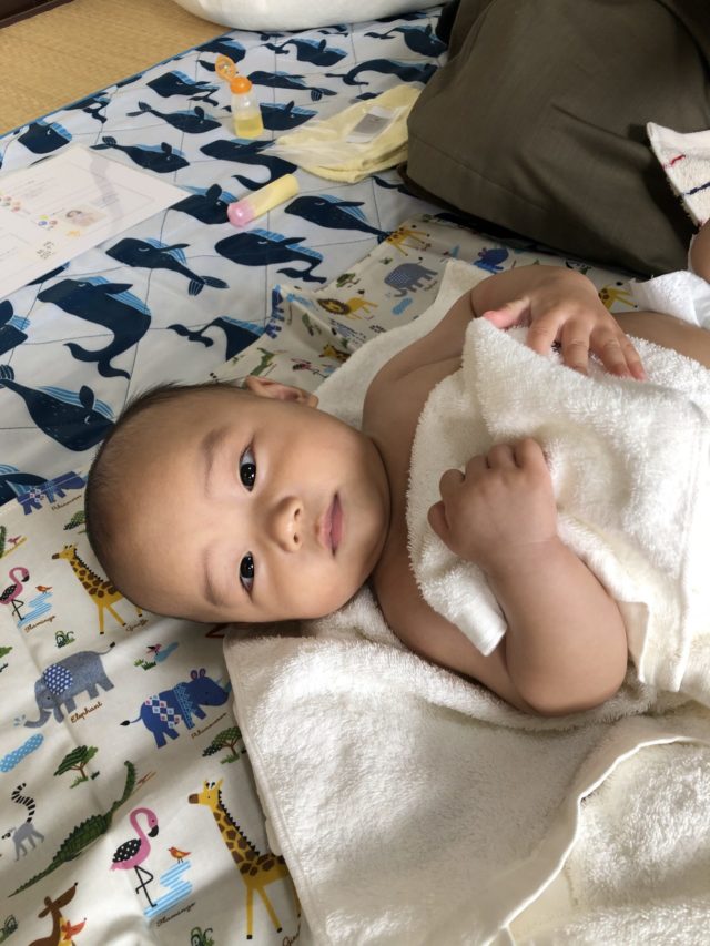 ママのマッサージが気持ちよかったみたいで、ニコニコしながらお話もたくさんしてました。