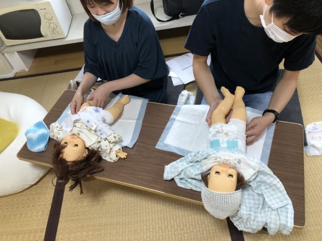 赤ちゃんのおむつ交換や、お着換え、シャワー沐浴体験ができますよ。
