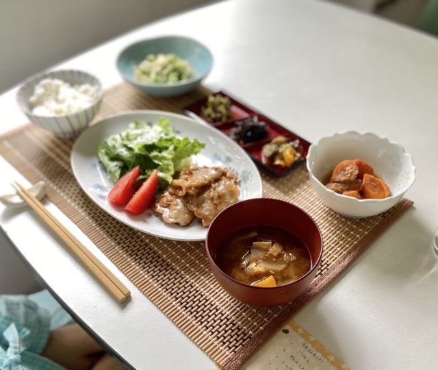 今日のお昼ごはんは、しょうが焼き定食でした♪