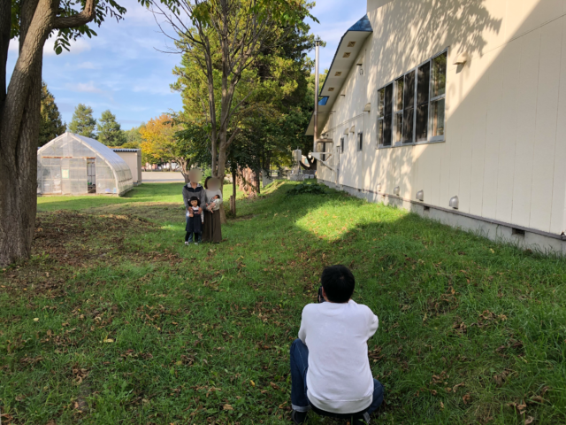 午前中は、野外での撮影。