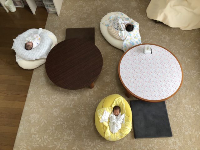 3人一緒に泣かれるとわたしの2本の手では足りないので、他の人の手が必要です。